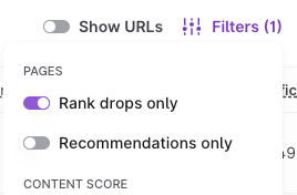 You can also filter for “Rank drops only” to find pages that have suffered rank drops recently. These are a quick win because they’re often quite easy to recover.