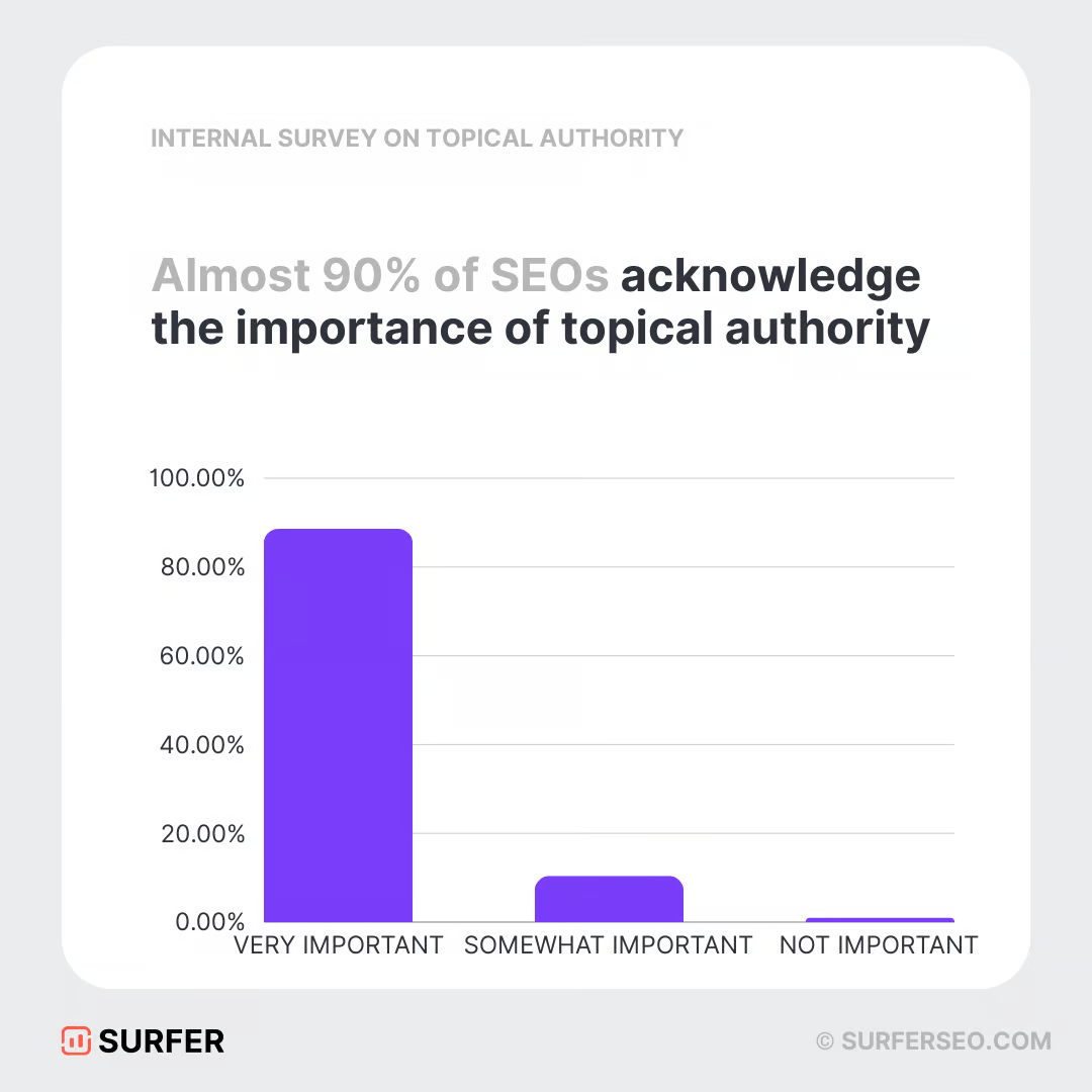 If you’re not familiar with this tool, it finds semantically-related topics based on the keywords you already rank for. These are likely the easiest topics to rank for, and writing about them also boosts your “topical authority”—which almost 90% of SEOs agree is important for SEO:
