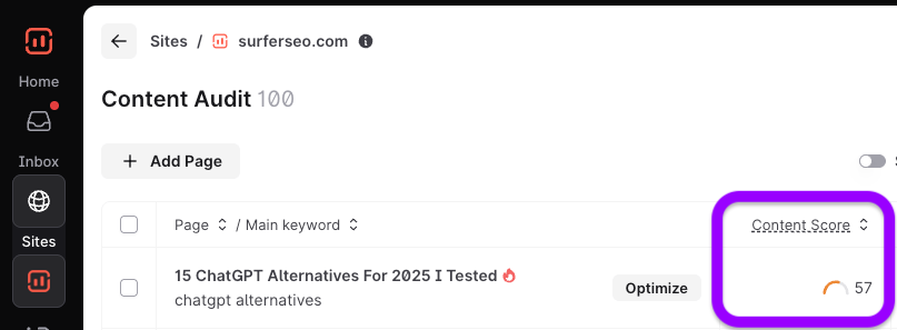 Many of Surfer’s top performers start this process in Content Audit as it’s the best place to find quick wins.