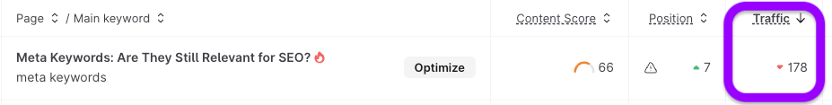 For example, I can see that our guide to meta keywords started losing traffic recently: