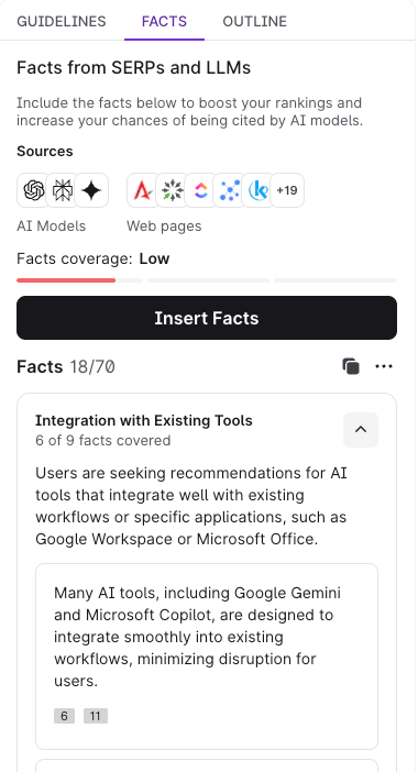 Content Editor also helps me to optimize for AI answers by finding important facts to include: