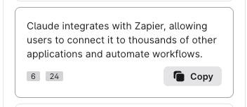 For example, I can easily copy and paste this fact about Claude’s integration with Zapier into the relevant section in the editor…