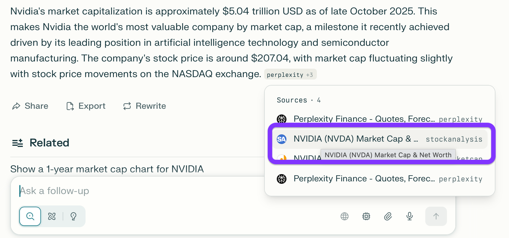 AI models are trained to select evidence and attribute claims. If your content is linked to or cited as a credible source, it's more likely to appear in an AI response. This is because citations enable so-called "grounding," which aims to prevent hallucinations and ensure content accuracy.
