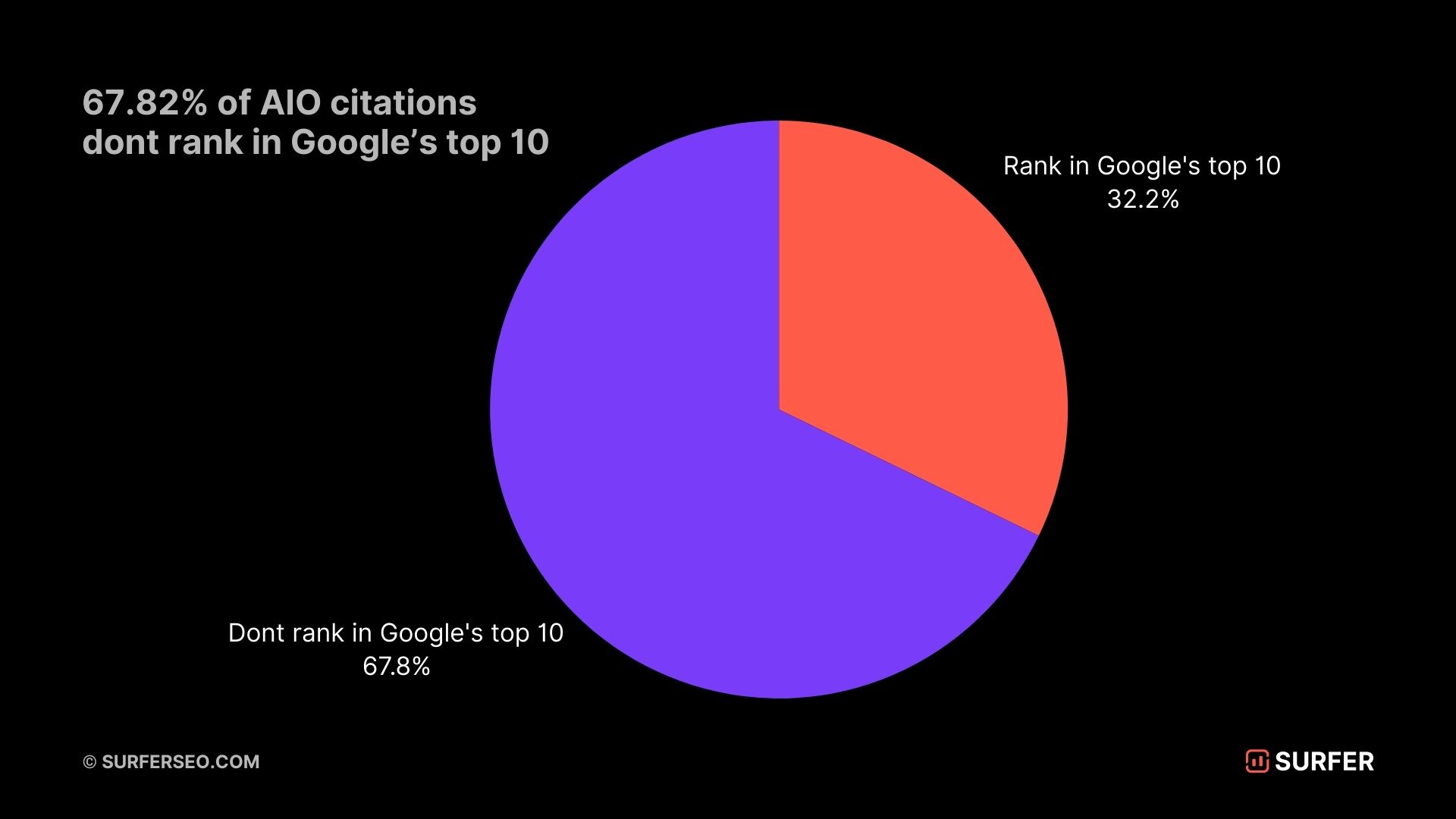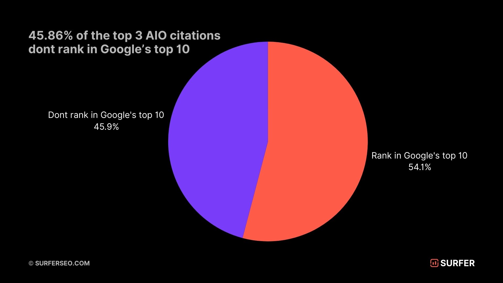 But still, whichever data you look at, it’s clear that a lot of AIO citations don’t rank in the top 10 regular “blue link” results at all.