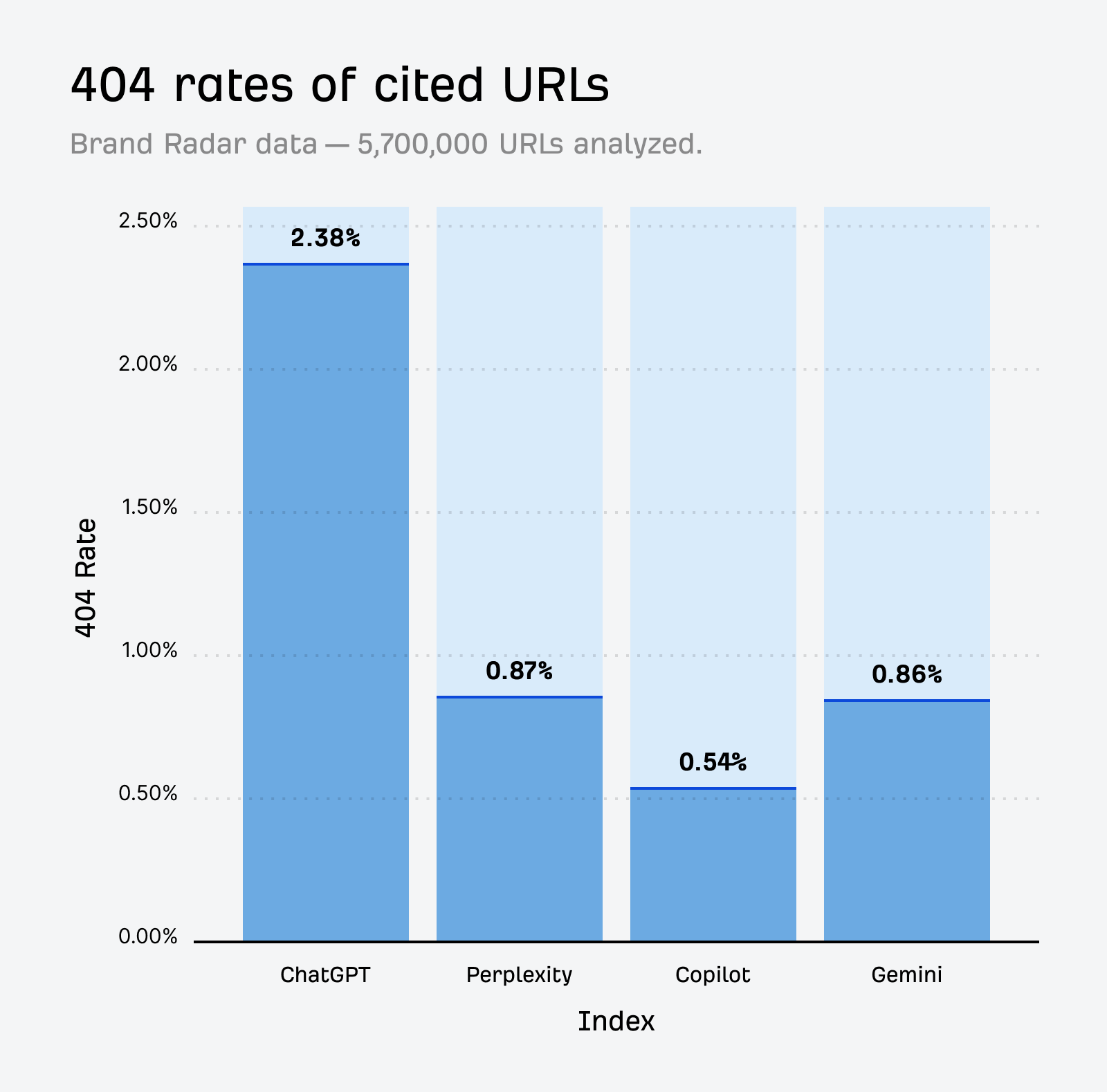 You can see in the graph above that 0.86% of the URLs cited by Gemini have a 404 status code.
