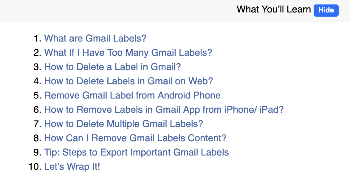 Consider adding a Table of Contents plugin or anchor links to your blog pages, similar to the example above. This helps with reader navigation and may help with LLM parsing.