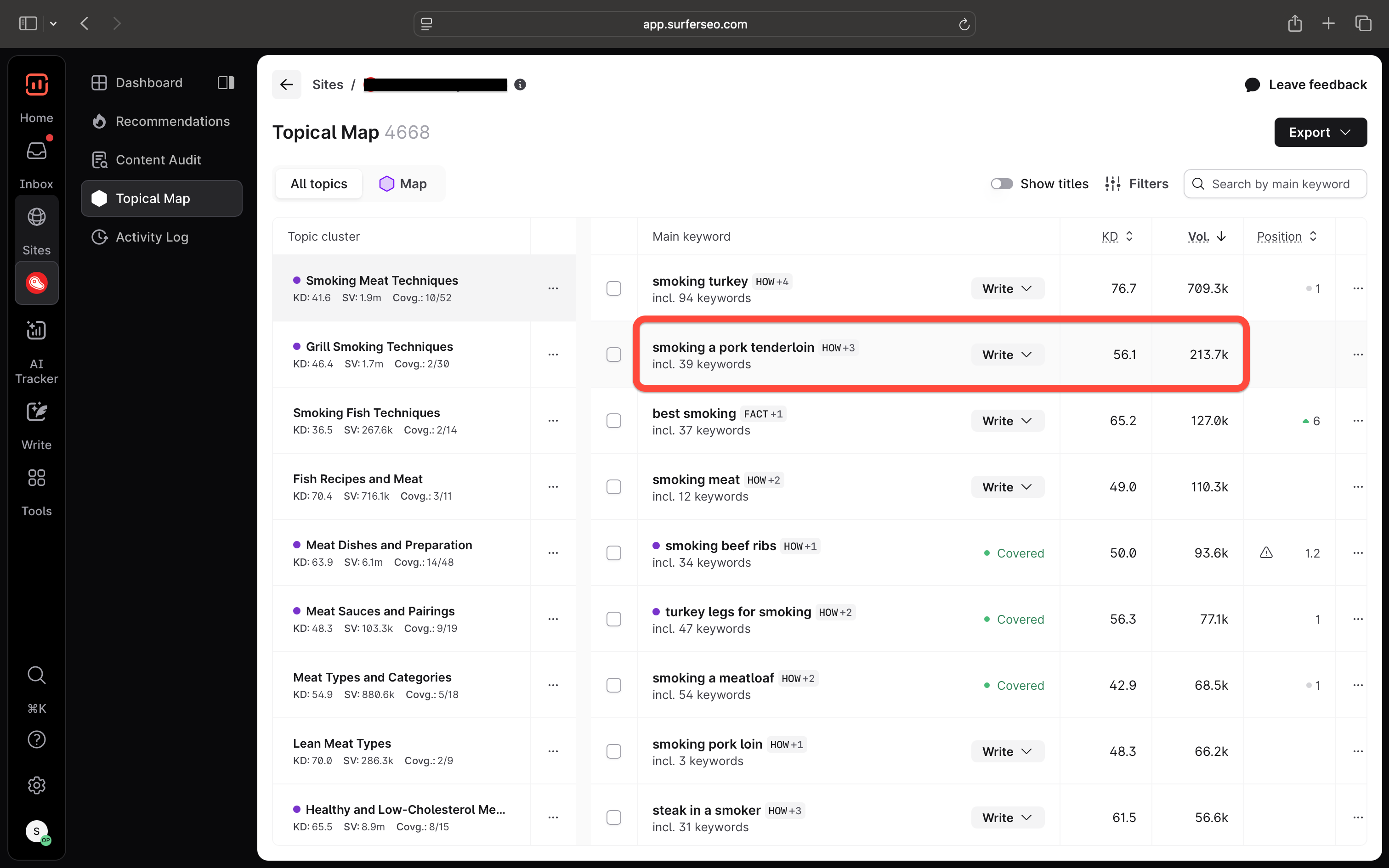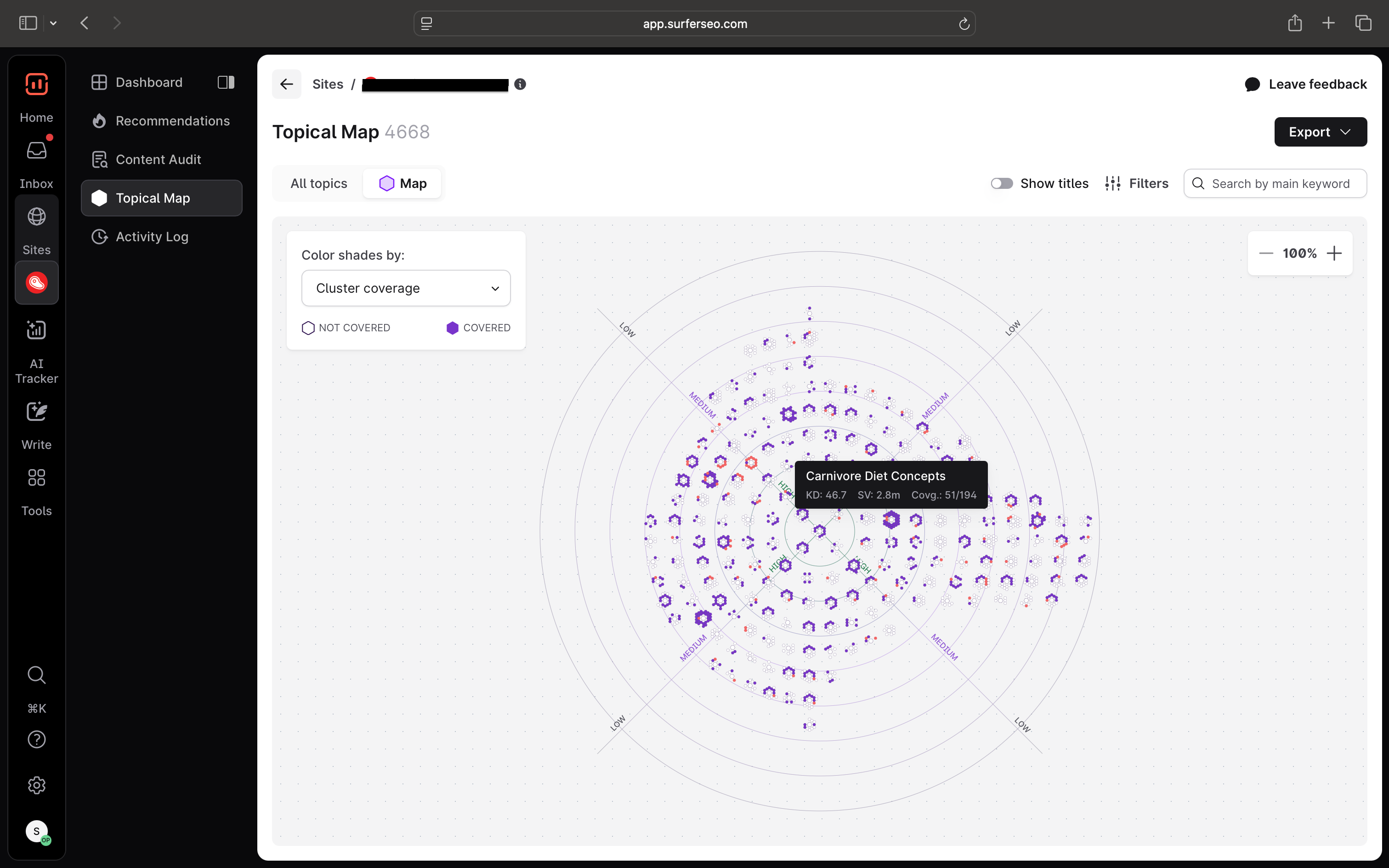 You want to ensure that your website covers relevant topics since AI tools rely heavily on a website's credibility in a niche. Surfer's Topical Map does a great job of showing you which areas you already have authority in.