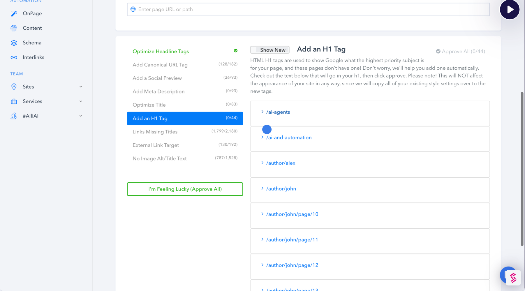 Alli AI is another in the list of AI-powered SEO tools. It helps users identify and fix technical SEO issues directly through the platform.