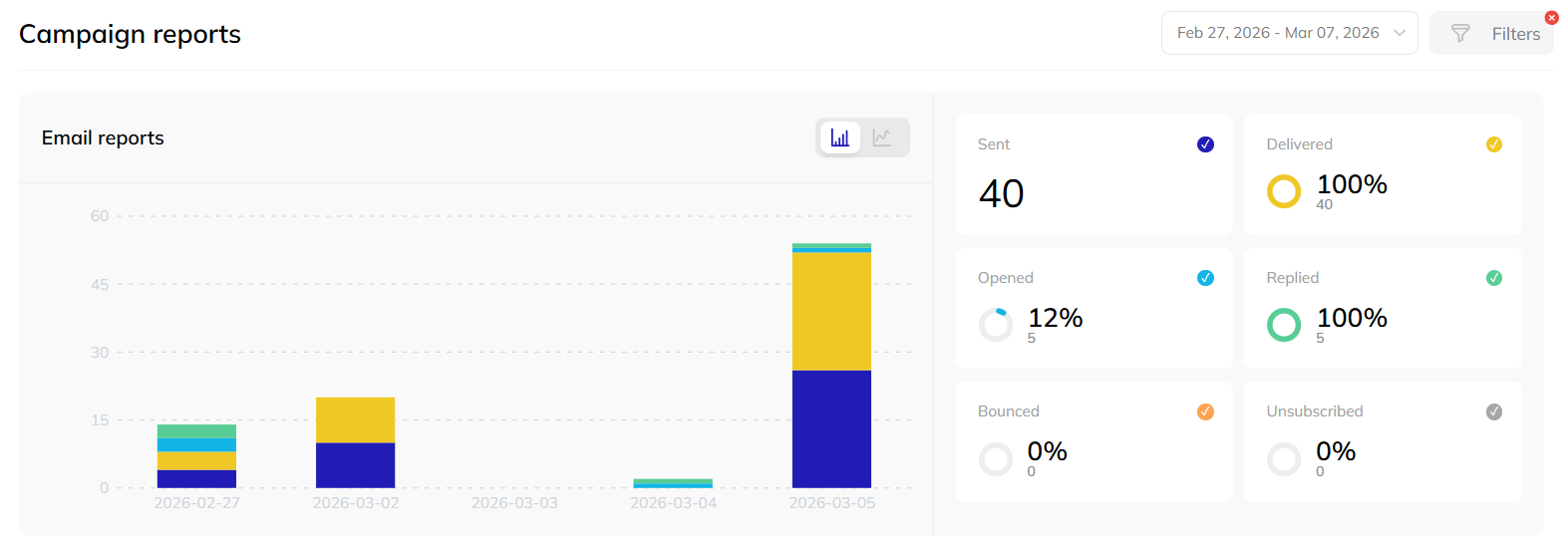 Campaign management happens in a unified dashboard where you can: