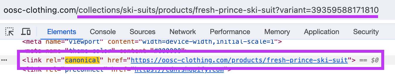 If your preferred URL isn't set as the canonical version despite following the necessary steps in your CMS, you should inspect the page's HTML to check whether the tag structure is correct.