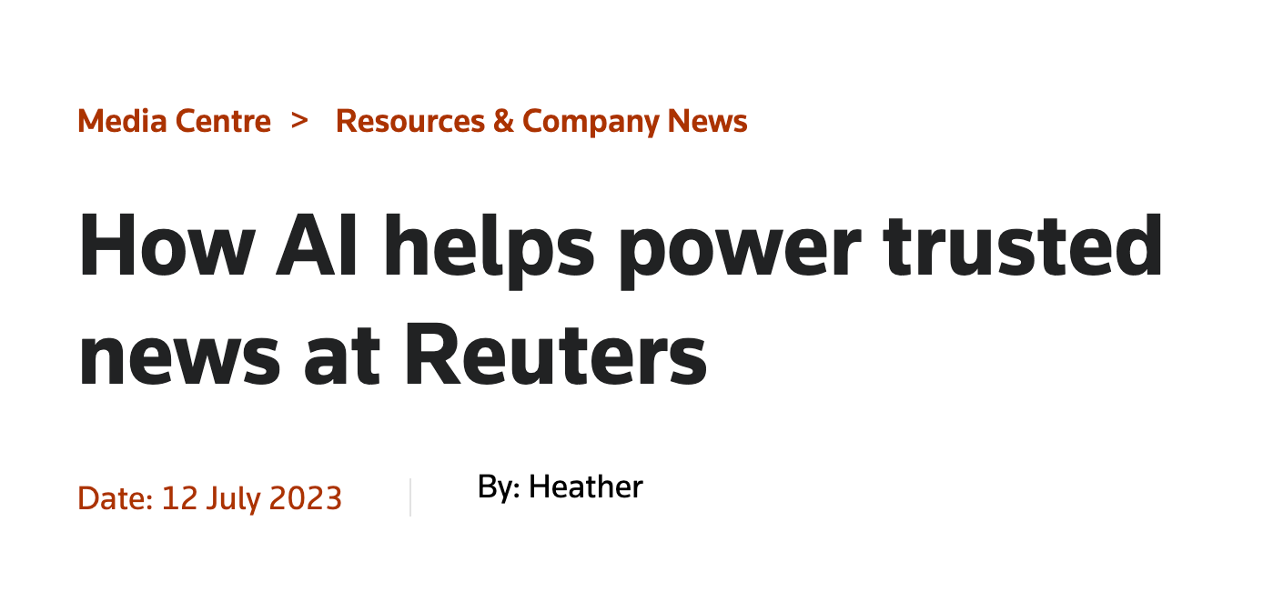 For example, Reuters uses an AI-powered tool called Lynx Insight to assist its journalists in identifying story ideas and analyzing massive data sets in real time. The system automatically surfaces trends, anomalies, and insights that reporters can turn into stories—essentially functioning as a data and research co-pilot.