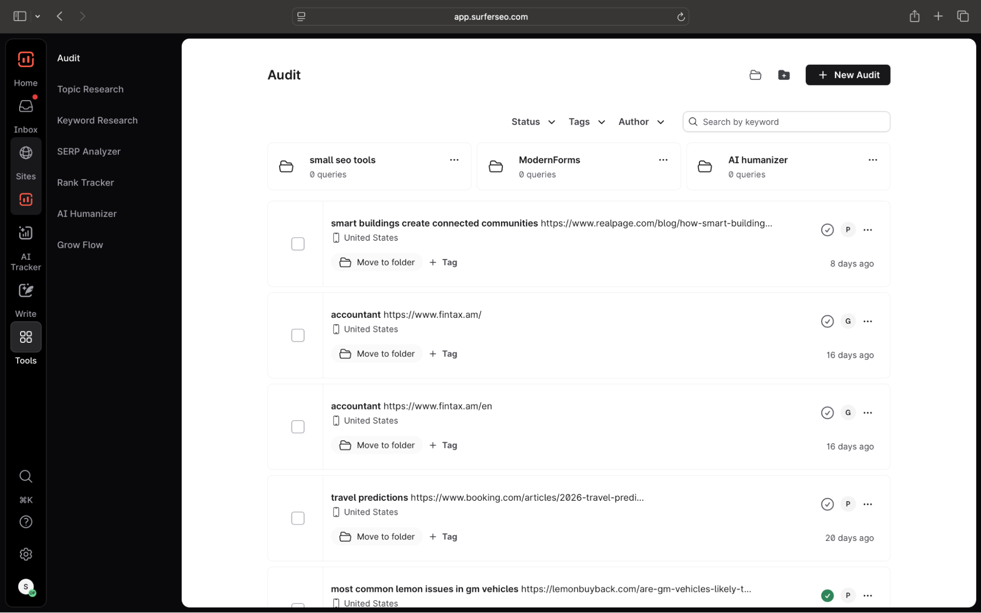 Surfer: A dedicated SEO platform that can automate content engineering-related tasks: keyword research, topic cluster development, search engine-optimized briefs and content generation.