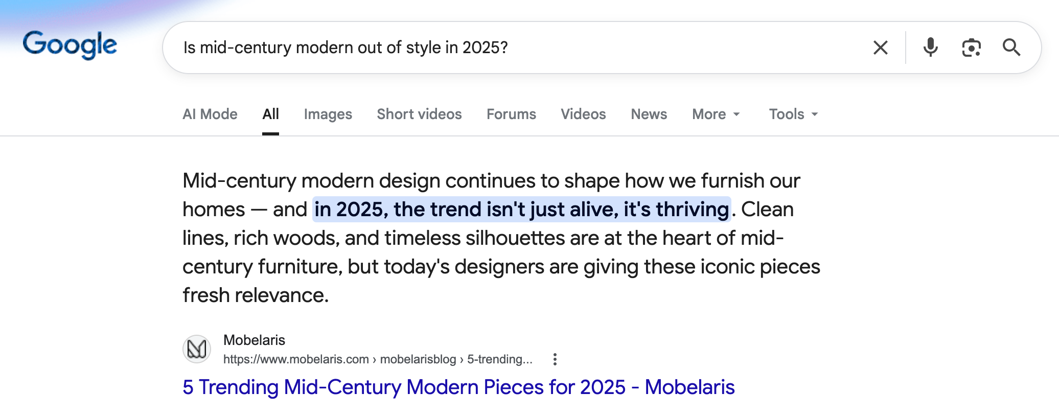 This means Google recognized the list as a credible response to the question, so it built the AI overview around it.
