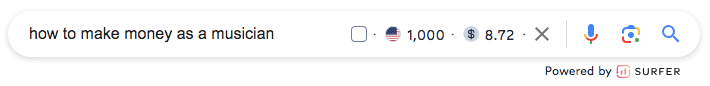 Log into Surfer Keyword Research and enter your website's primary topic. Here's a snippet of 90 suggested blog posts for a topic "become a musician."