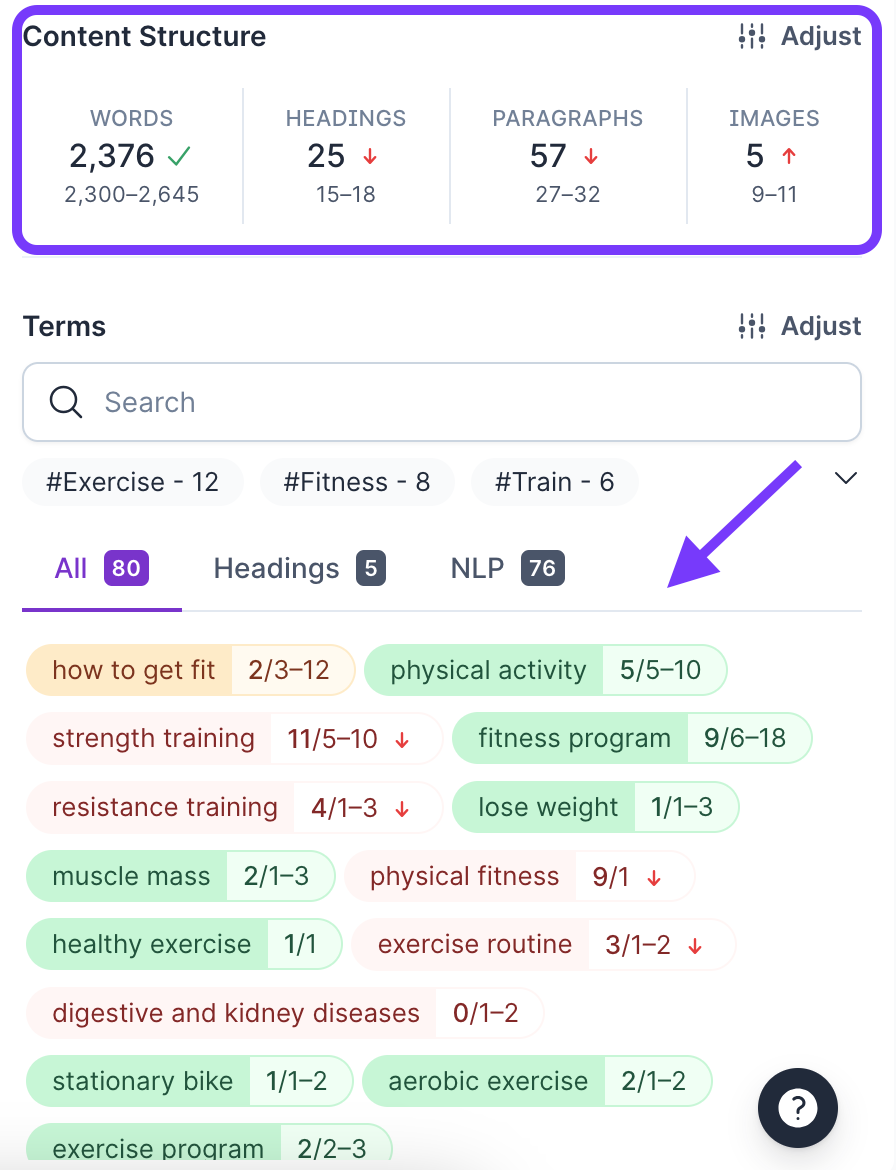 You can also use tools such as Surfer's Content Editor to optimize your content. In the Content Editor you can see which keywords to include in your content and how often.