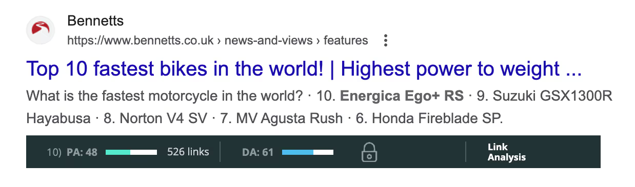 For example, if you’re a SaaS company publishing a pricing guide, check how your page authority stacks up against similar guides from competitors and not against pages from sites like Forbes or HubSpot. Comparing yourself to pages in a different authority tier skews your expectations and strategy.