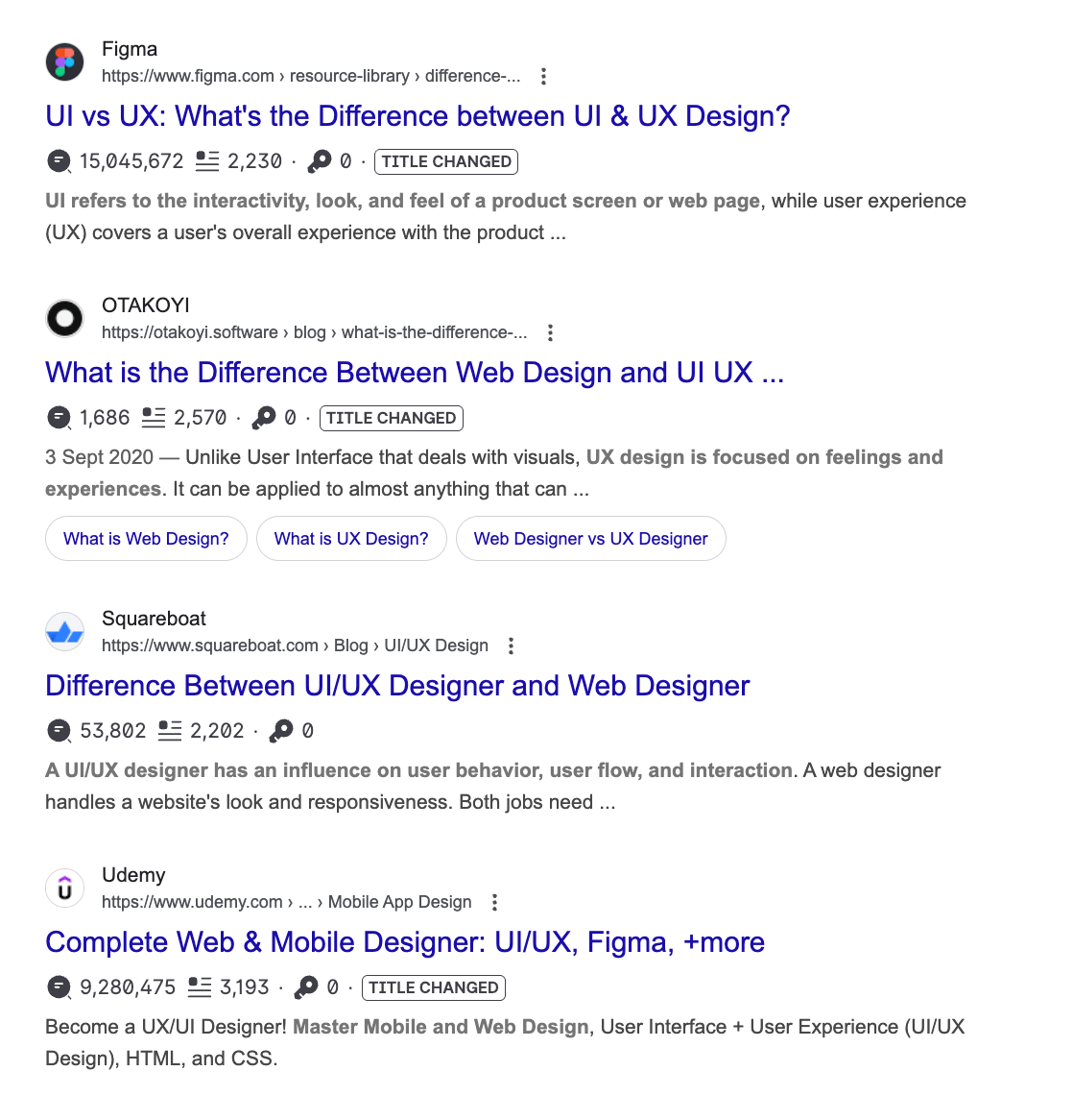 But a topic like “UX and web design” shows less authoritative websites ranking on the first page of Google, alongside some popular names.