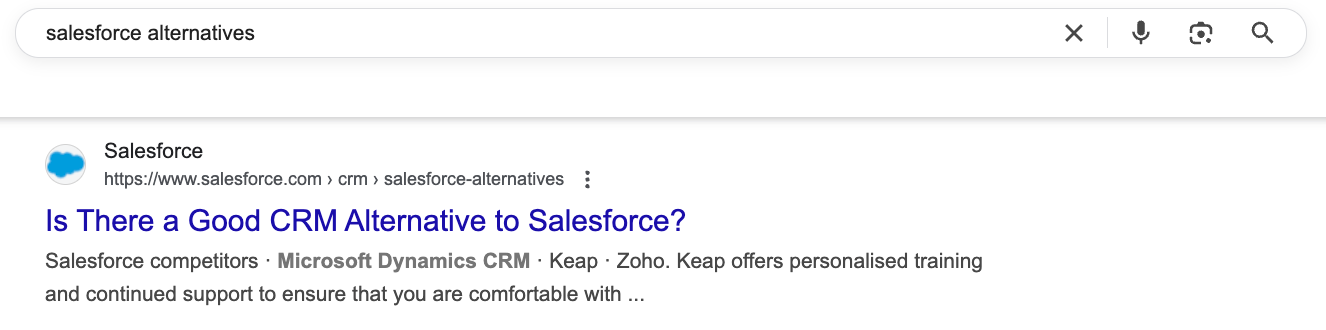 This way, Salesforce dominates the search landscape for branded keywords and has direct control over the audience's opinions. By creating robust PR content, you can achieve the same, as long as you: