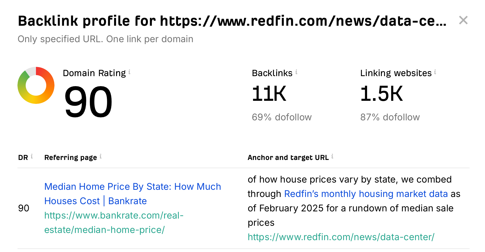 In Redfin's example, we can see that the site has over 11,000 backlinks from more than 1,500 websites, which does wonders for the brand's reputation and helps both Google and users see it as an authoritative source.
