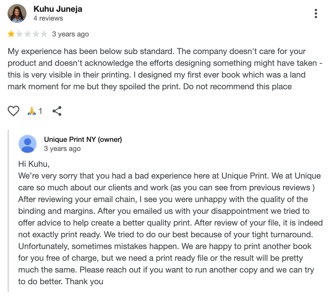 If you need an example of a well-written response to negative feedback, this one checks all the right boxes: