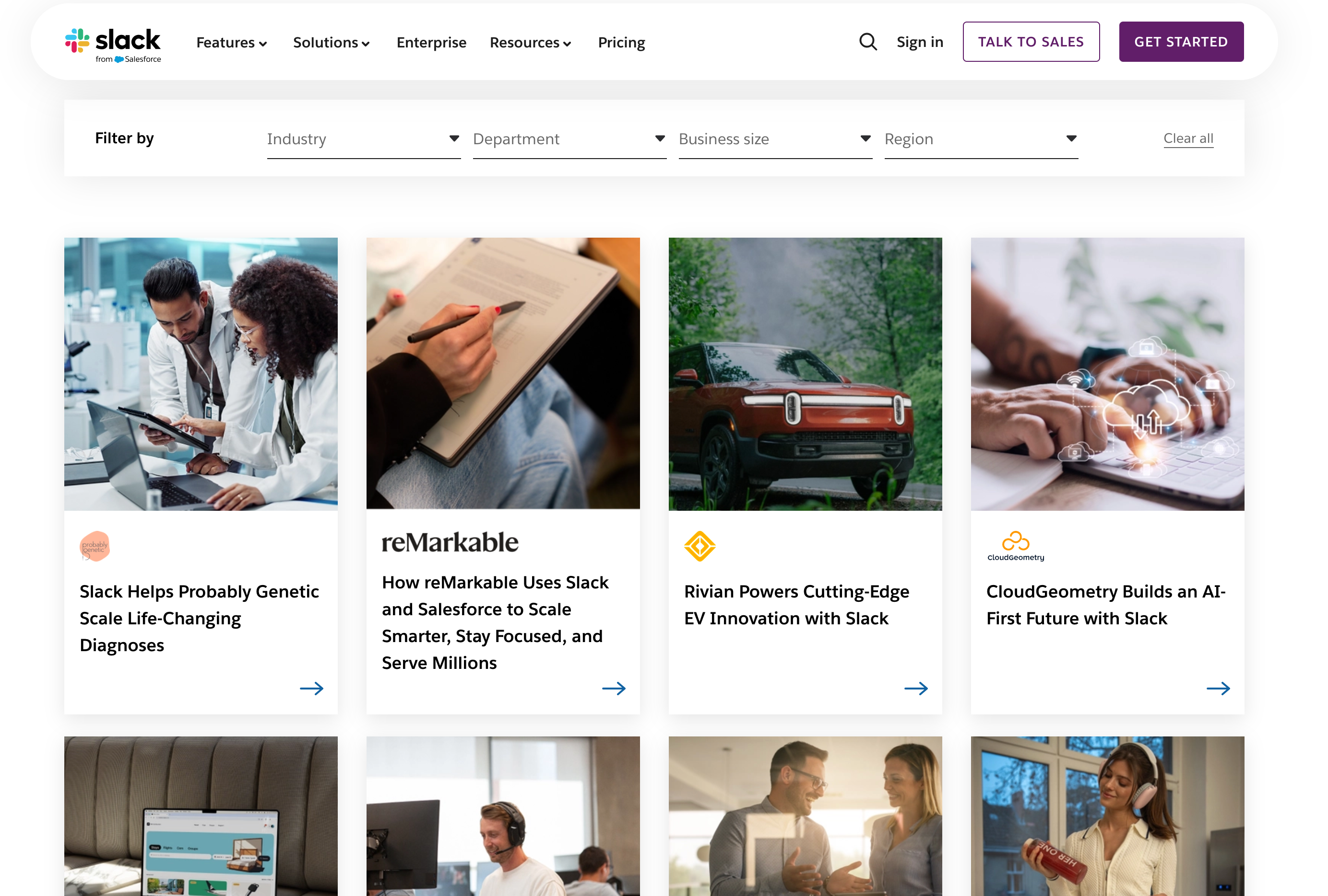 For example, Slack has a rich Customer Stories page with plenty of results-driven case studies and testimonials.